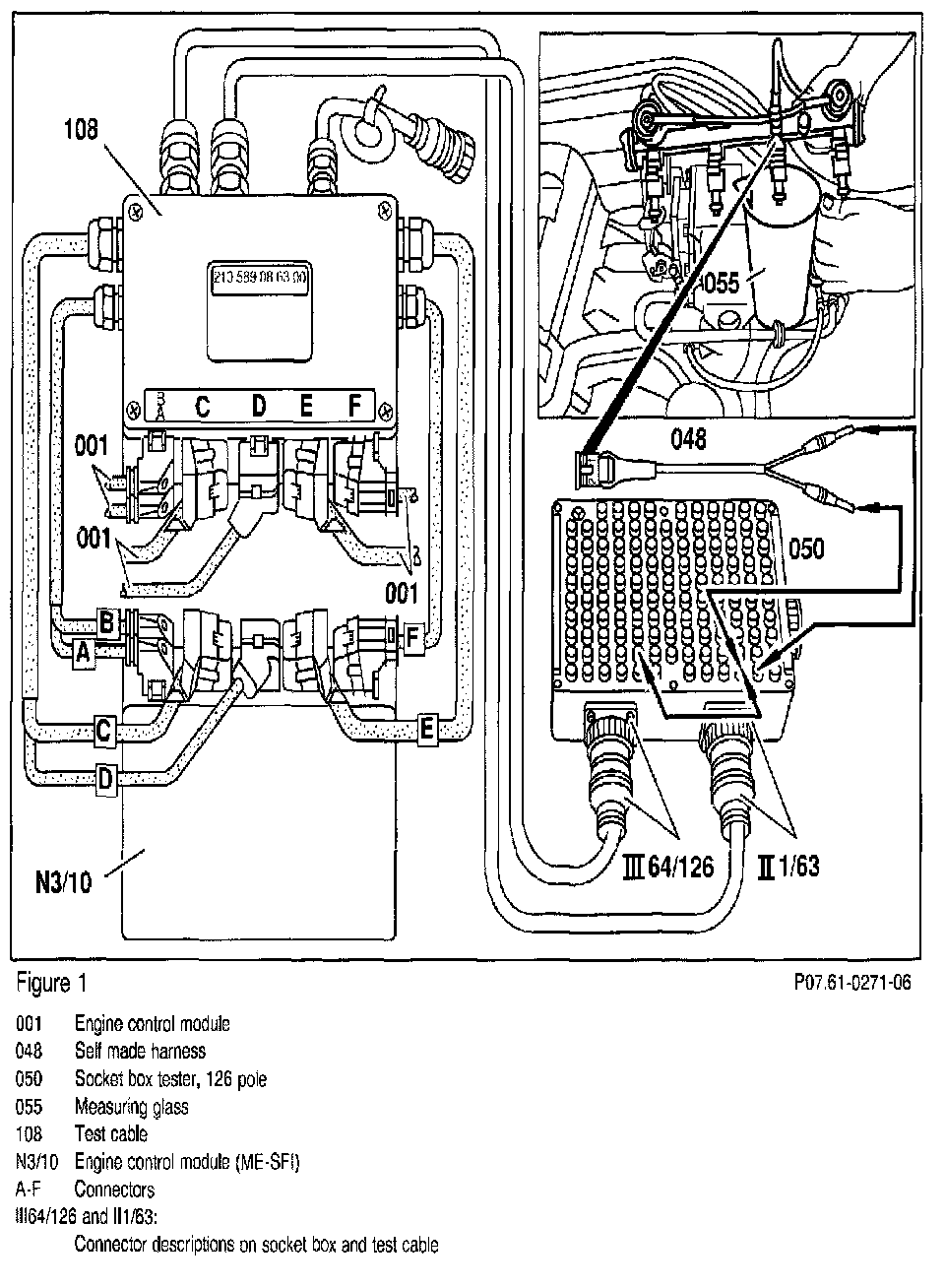 NOTE: When disconnecting the connectors on the engine control module remove center connector (D) first, when reconnecting connectors install center connector (D) last.
