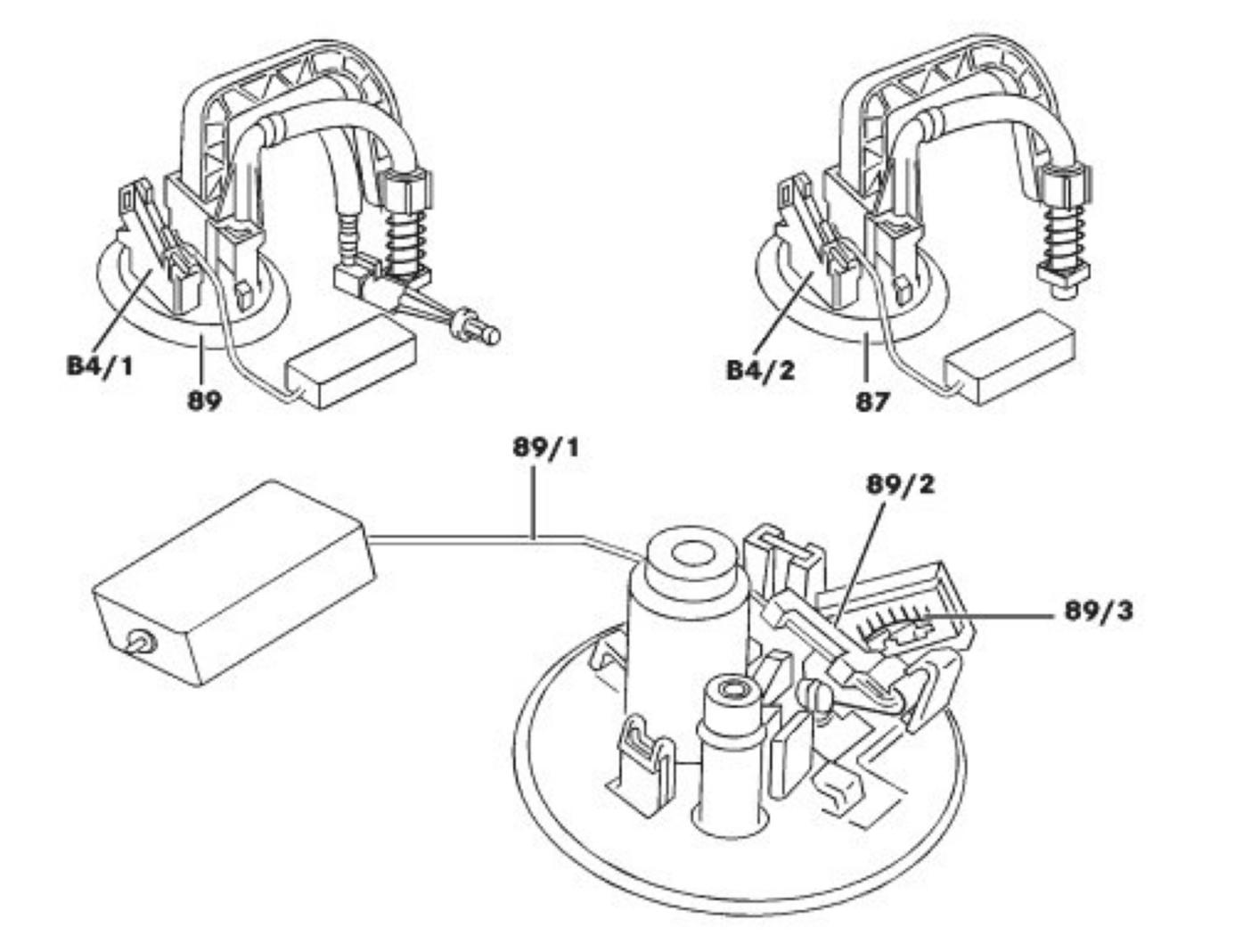 The fuel gauge sensor (B4/1, B4/2) is a lever sensor with sliding contact (potentiometer)