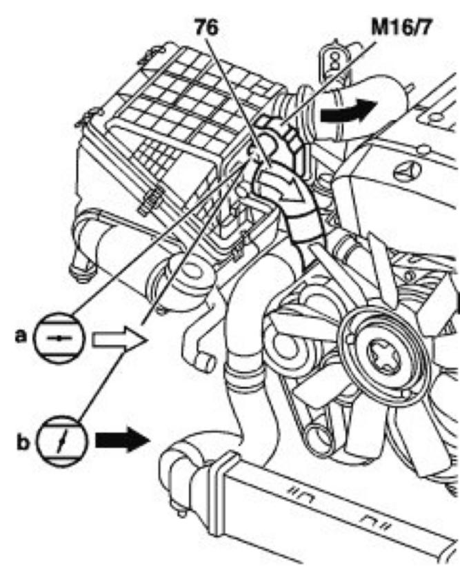 - On/off ratio about 10%: recirculated air flap open (a), no boost pressure (aspirated mode through recirculated air pipe)