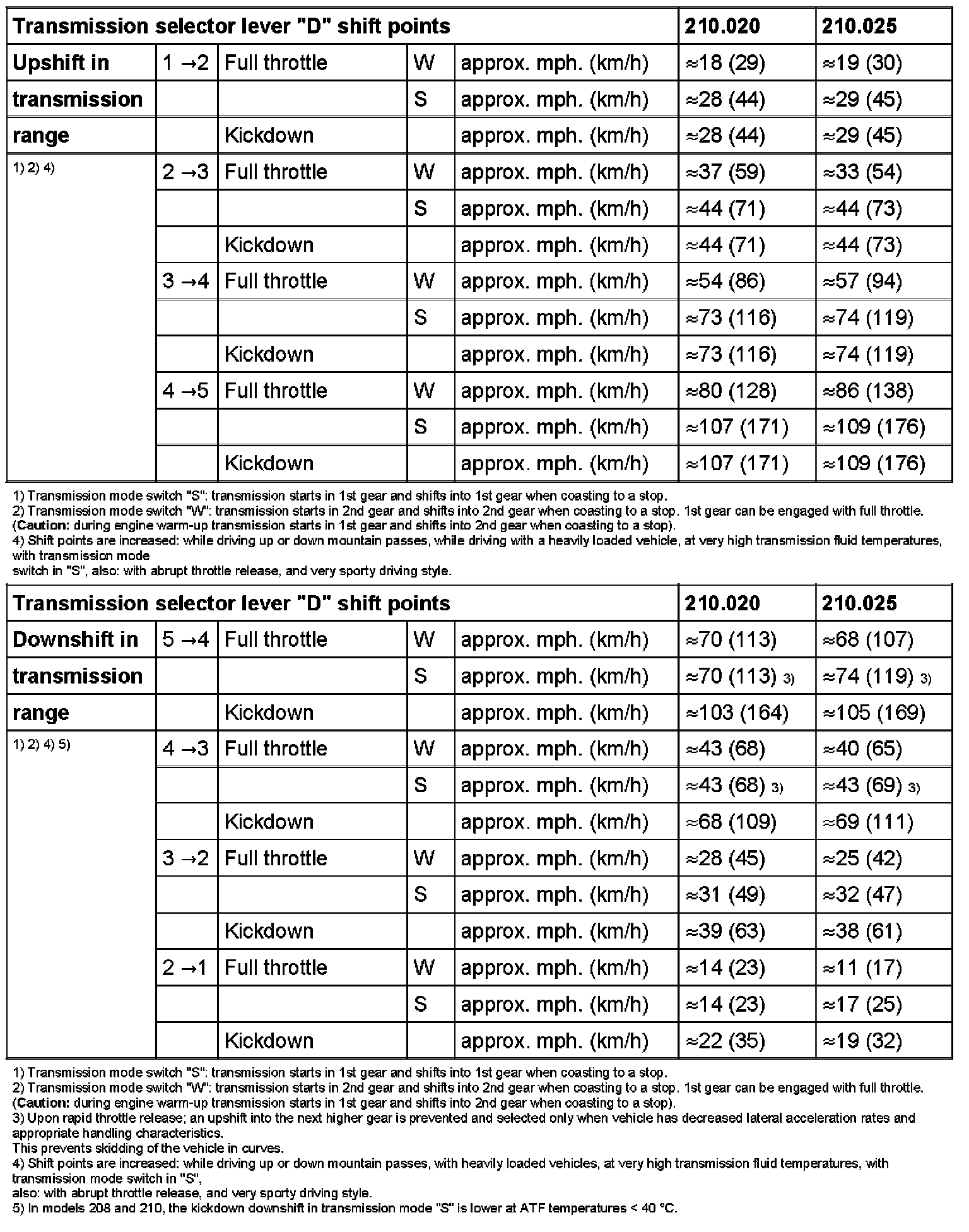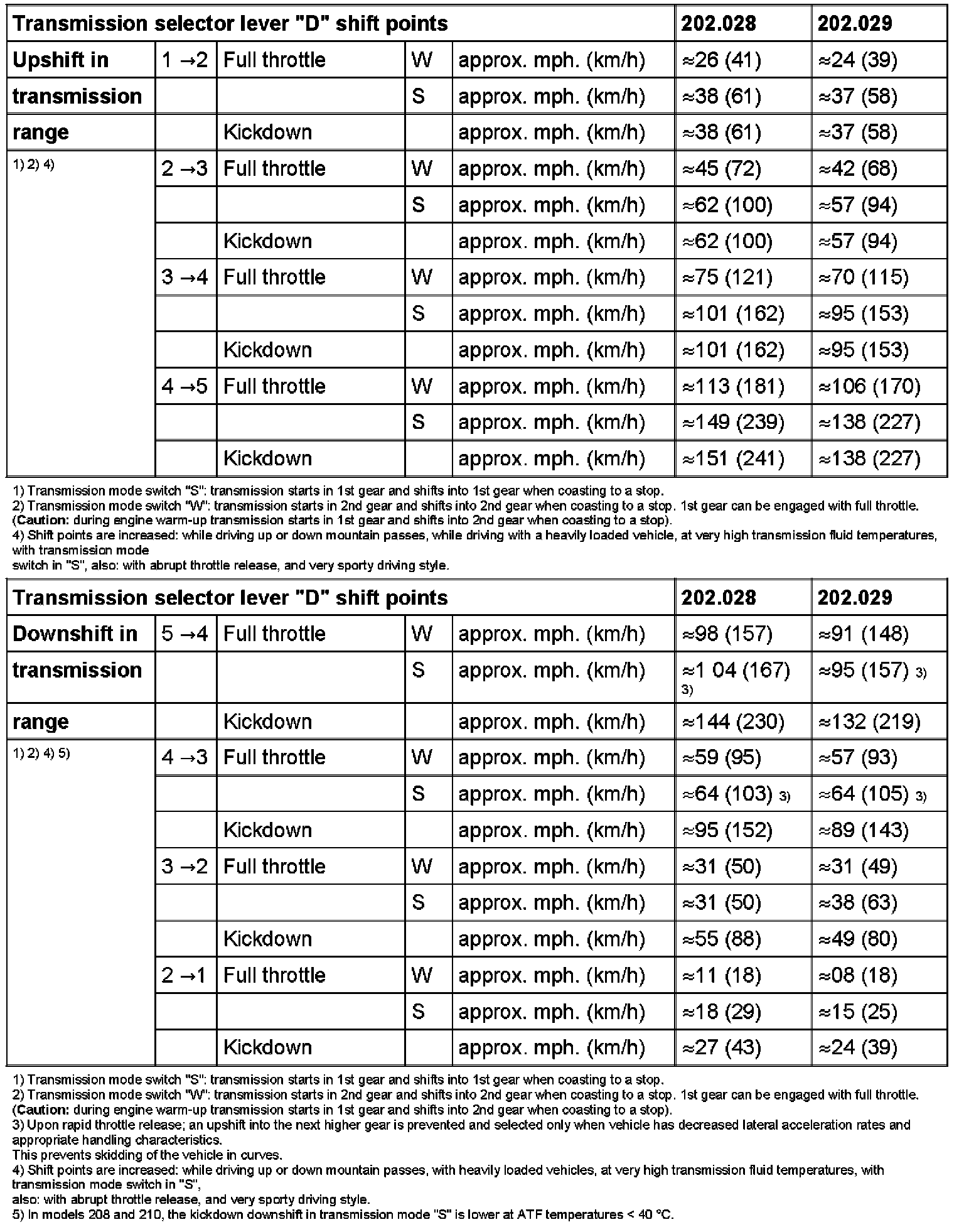 - Shift points are increased: While driving up or down mountain passes, with heavily loaded vehicles, at very high transmission fluid temperatures, with transmission mode switch in "S", also: with abrupt throttle release, and very sporty driving style.