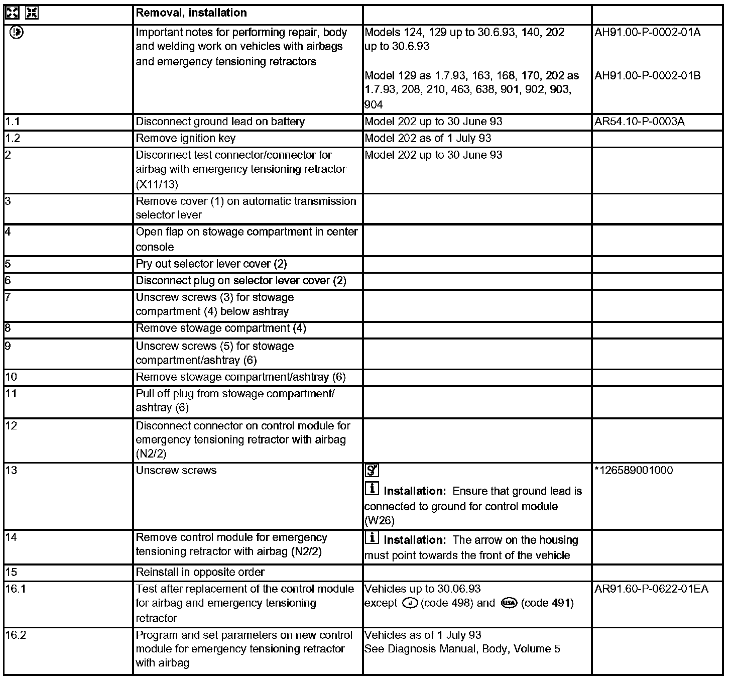 AR91.60-P-0622E Removing And Installing Airbag/Emergency Tensioning Retractor Control Module