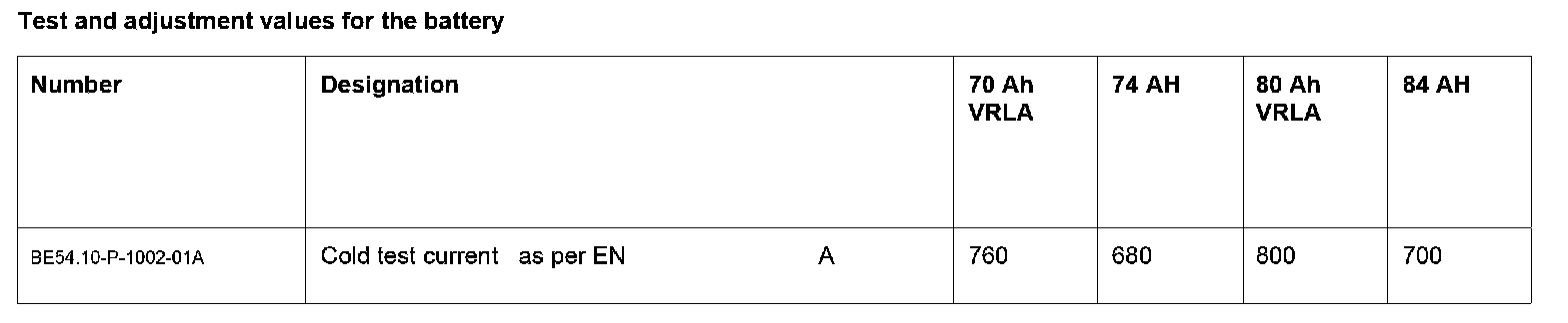 Test And Adjustment Values For The Battery: