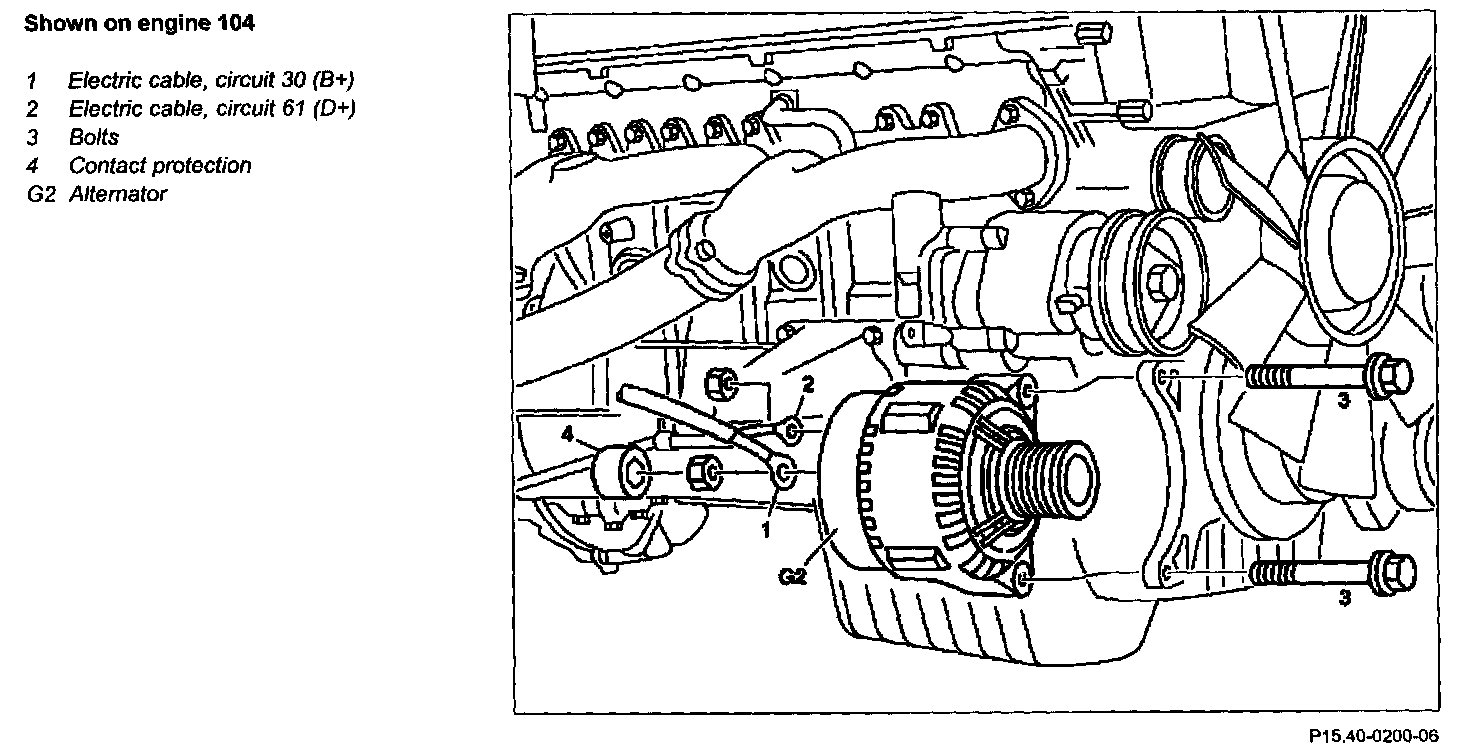Nut of circuit D+ to generator - 5 N.m