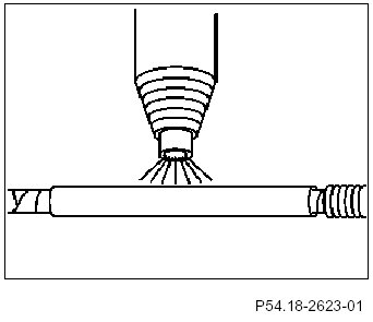 Primarily fabric tape is used for the visual adaptation of the repair point and to protect against chafing. In vehicle areas with higher loads (e.g. engine compartment), fabric tape should only be used in combination with other (watertight) safety measures.