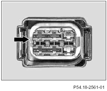 1 Using a suitable tool, at the line side unlock the lugs (1) on lock tab.