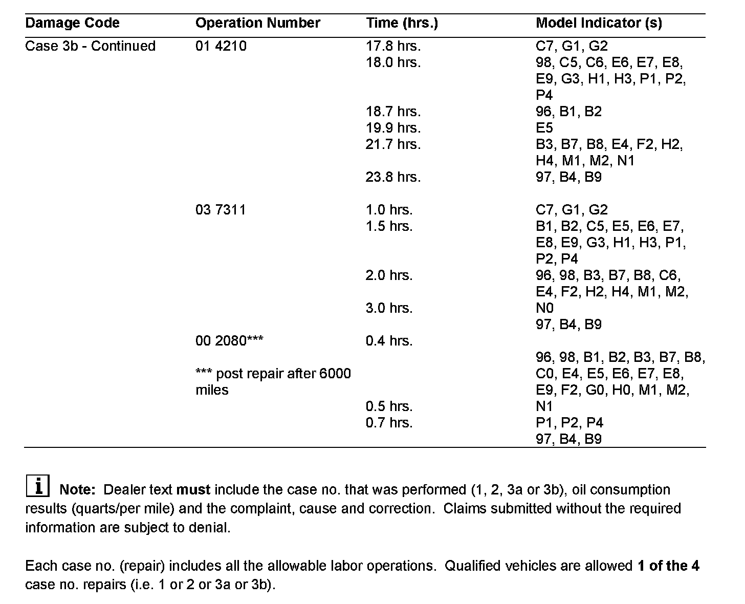 If an engine is replaced, solely due to excessive oil consumption and/or oil sludging, instead of the performance of the corrective measures as identified in S-B-18.00/16a and any subsequent updates, the engine will be debited back to the dealer.
