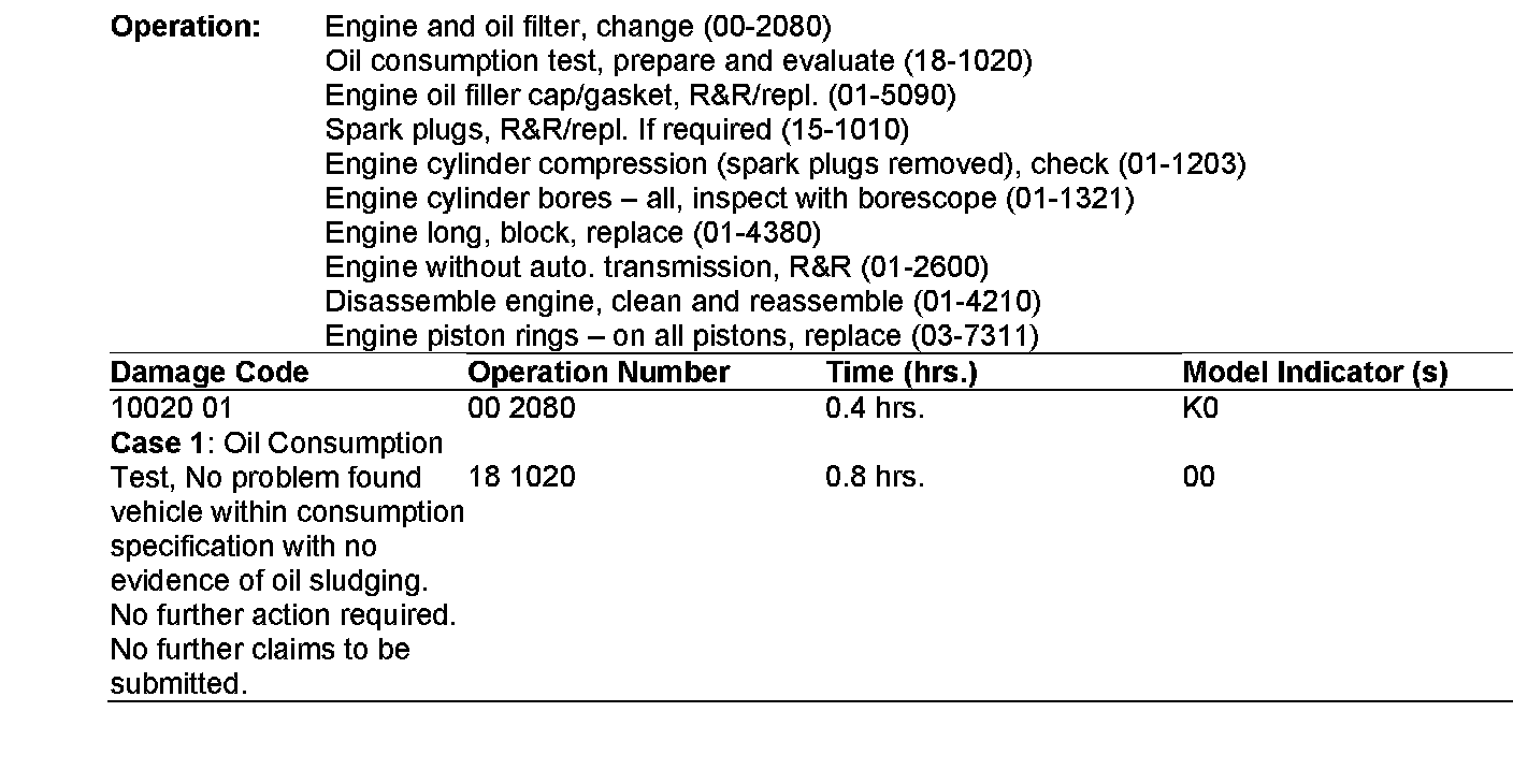 If an engine is replaced, solely due to excessive oil consumption and/or oil sludging, instead of the performance of the corrective measures as identified in S-B-18.00/16a and any subsequent updates, the engine will be debited back to the dealer.
