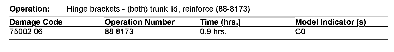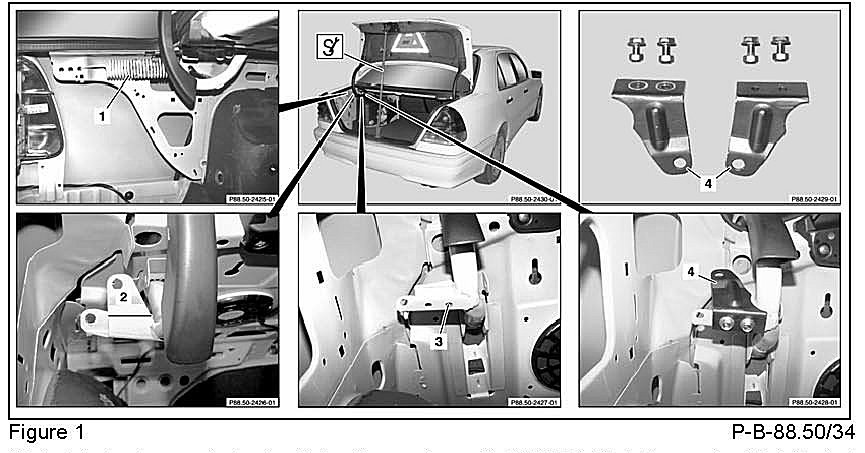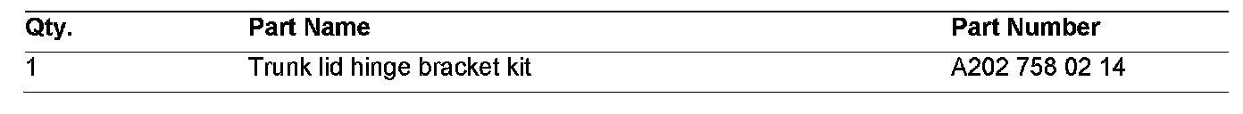 If you receive customer reports in the above models regarding the trunk lid not staying open, check to see if the retaining bracket for the tension spring at the trunk lid hinge is damaged / broken. In this case, the trunk lid hinge bracket must be replaced. It is no longer necessary to replace the trunk lid hinge since the bracket is available separately.