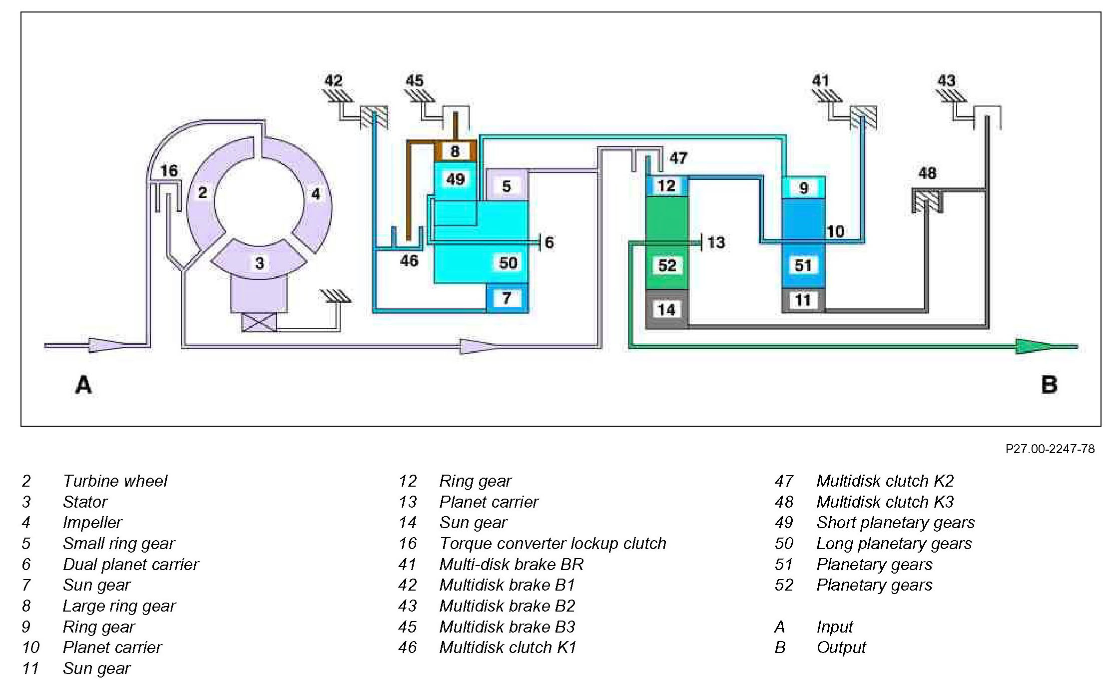 transmission mode "S", the power flows through the following gear sets: