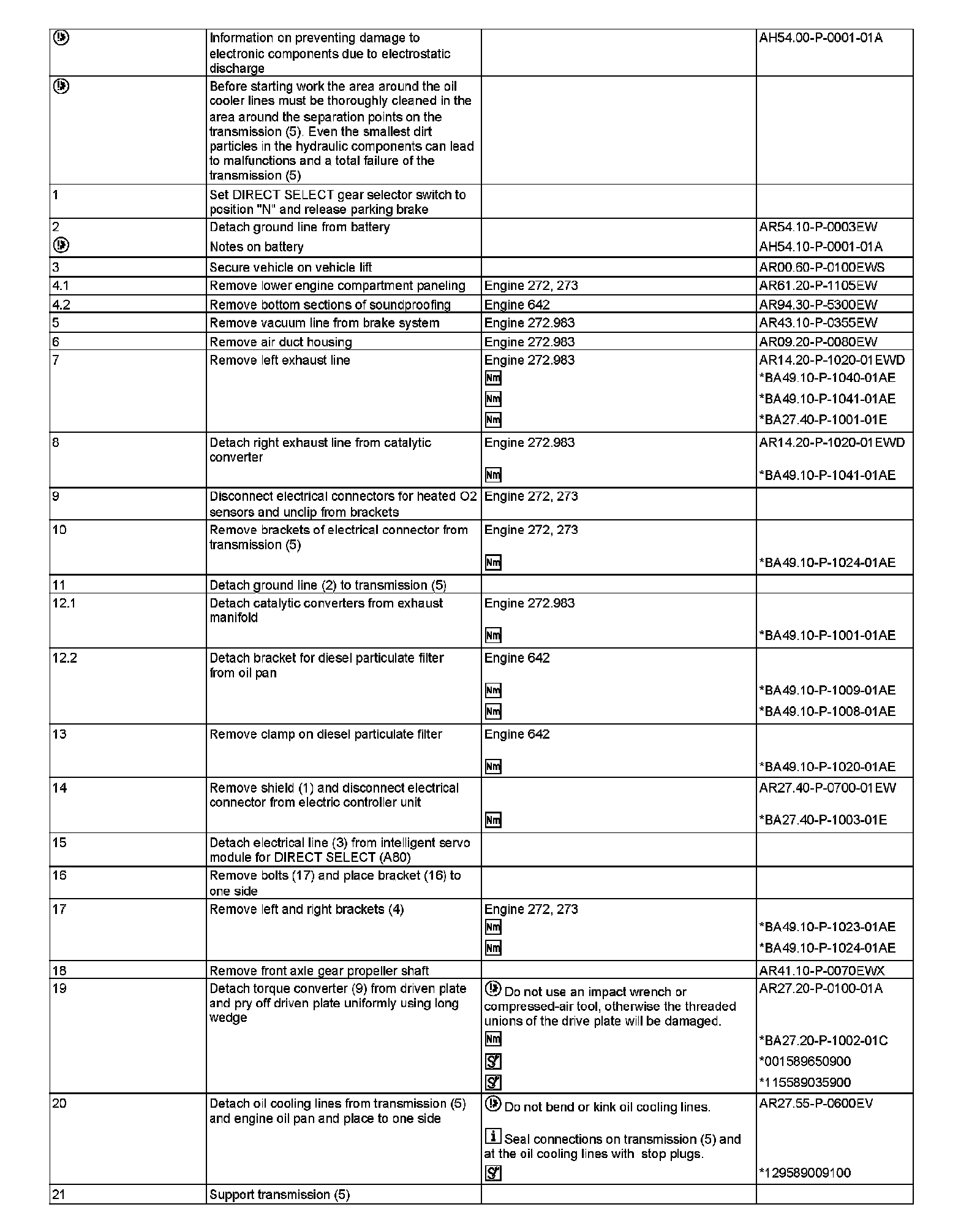 AR27.10-P-0500EV Remove/install transmission with torque converter