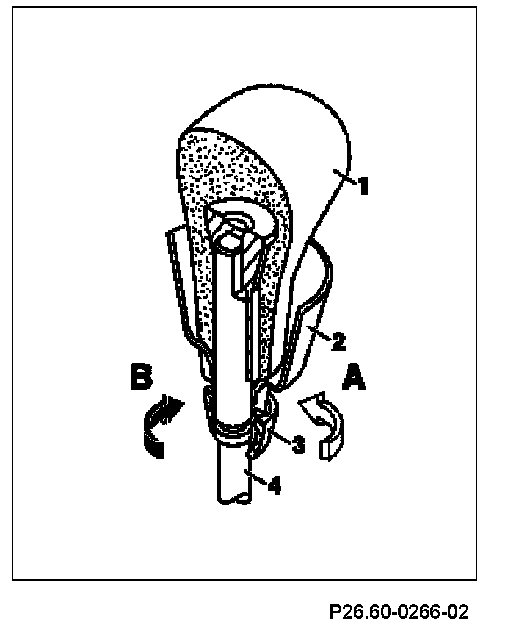 4 Push shift lever handle (1) with gaiter (2) onto shift lever (4).