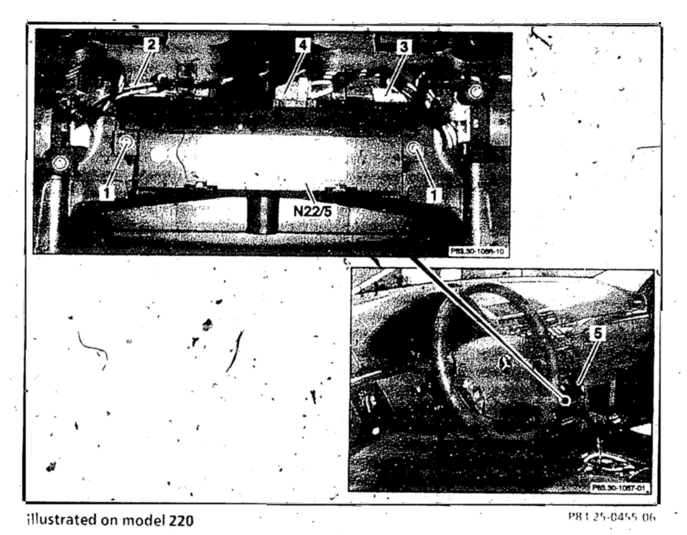 The stepping motor electronic control module (N22/5) is located behind the center console and is attached to the front of the A/C housing.