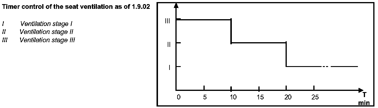 "Stage III" of the seat ventilation is switched back automatically in regular mode after 10 min to "stage II" and after a further 10 minto "stage I".