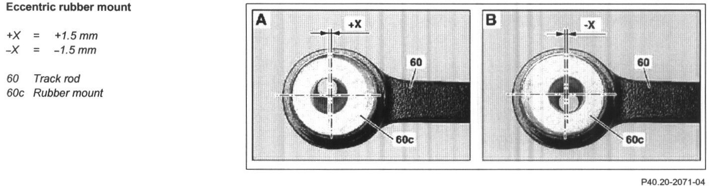 - If the test values are not achieved, the rubber mount installed as standard (60b) can be replaced by an eccentric rubber mount (60c).