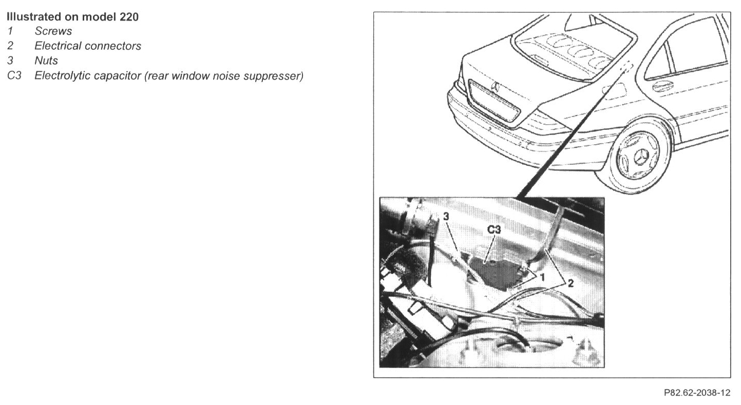 Removing and installing rear window noise suppression capacitor