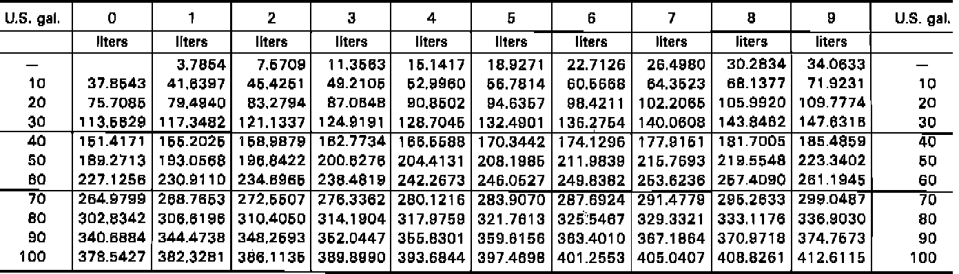 Fig. 8 Conversion Table, U.S. Gallons To Liters: