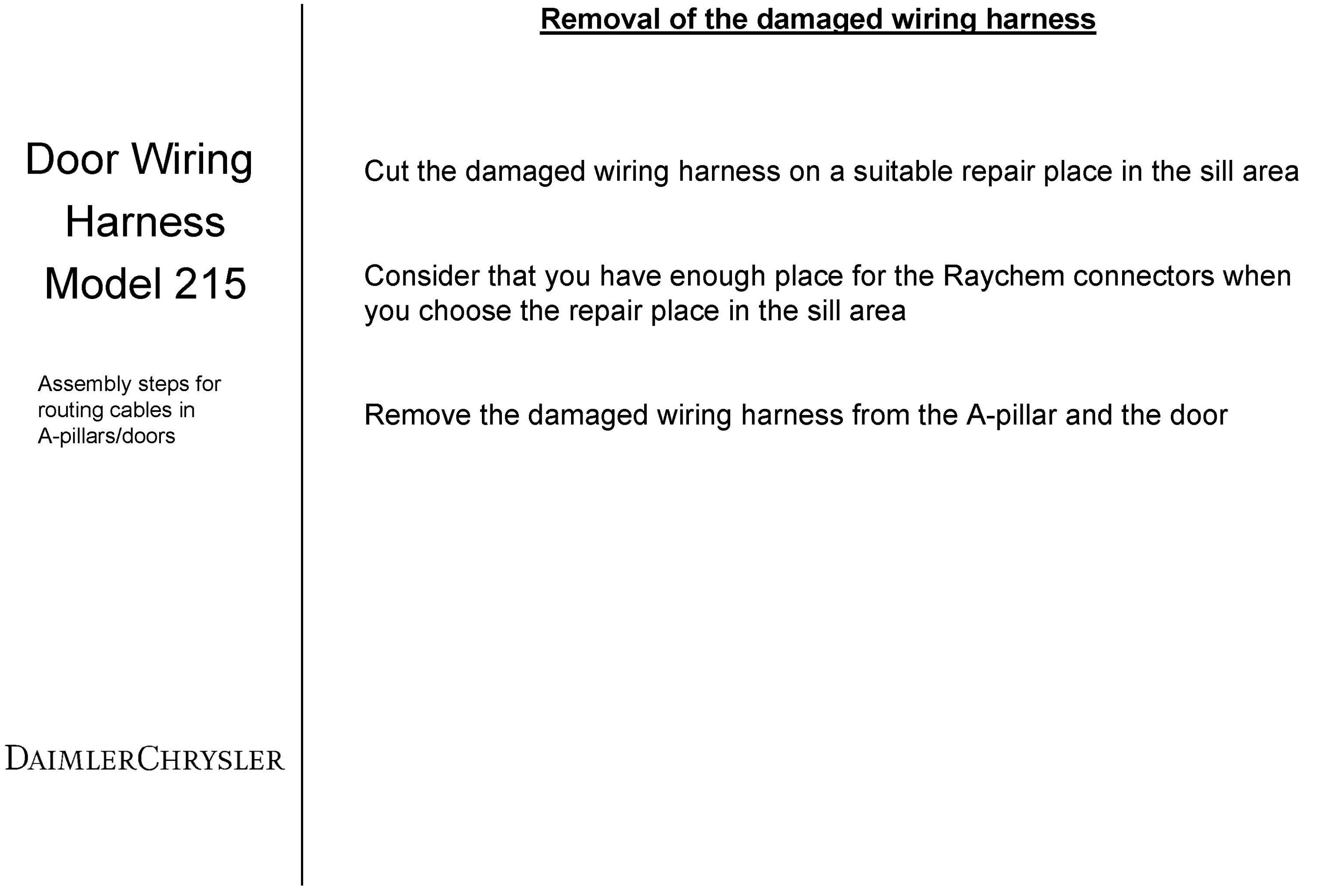 It is not necessary to replace the entire interior wiring harness. Remove foam pocket from A-pillar.