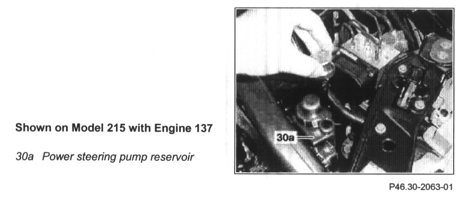 1 Fill power steering reservoir up to approx. 10 mm below the upper edge of the reservoir.