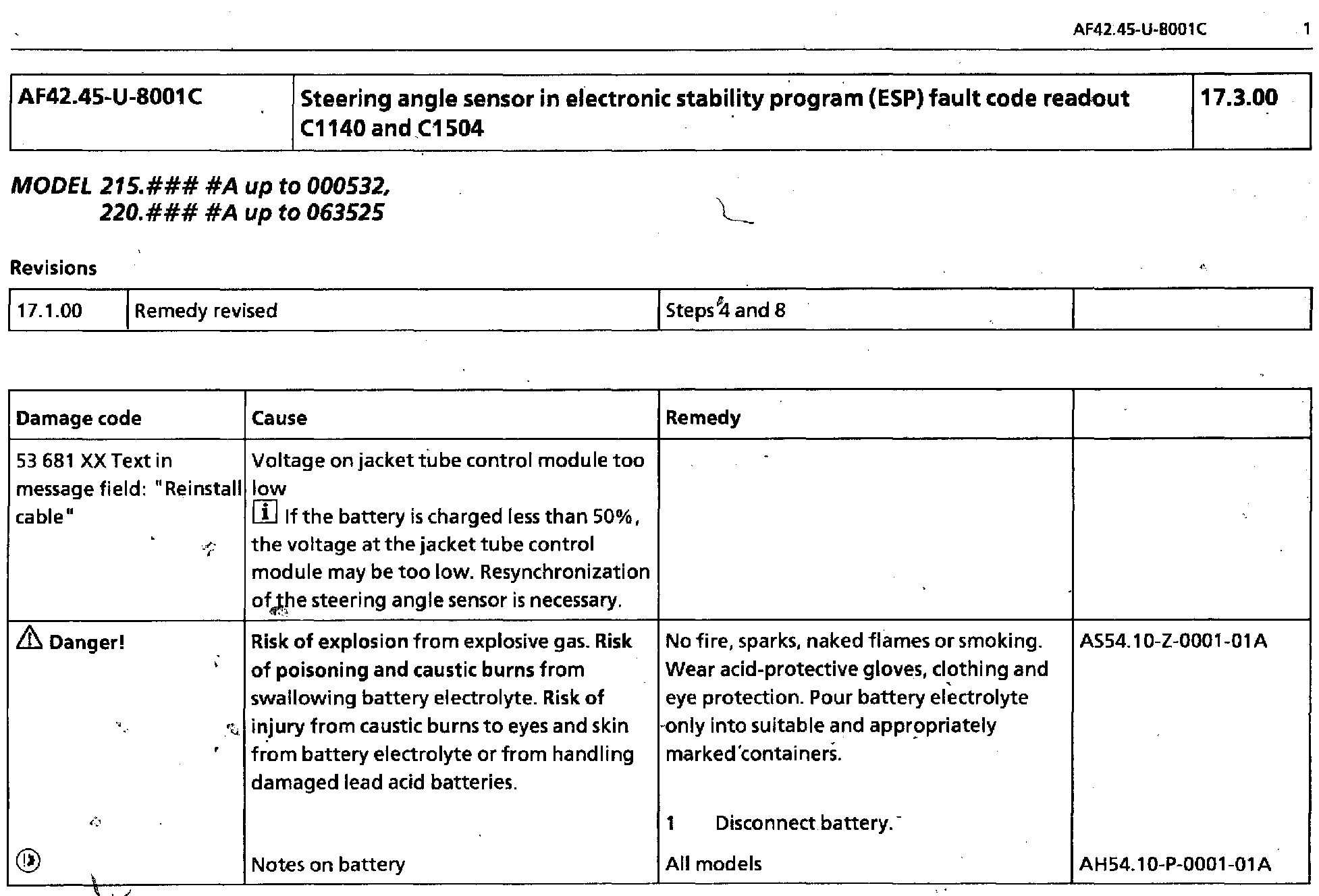 Steering Angle Sensor, DTCs C1140 and C1504 Set