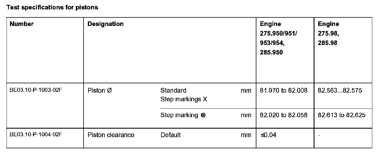 No piston with a standard diameter in should be installed in a cylinder bore with identification 0 to avoid engine damage. This can result in the following combinations: