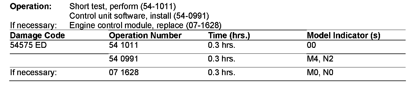 If the engine control unit is either part number A025 5457432 or A000 1532879, replace the engine control unit with one of the below part numbers and proceed with the software update as described below.