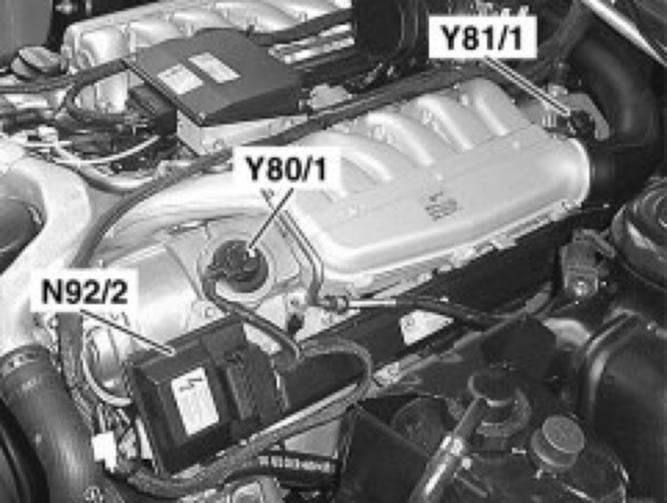 The electromagnetic cylinder shutoff valves are supplied with voltage by terminal 87. The cylinder shutoff valve is actuated in cycles on the ground side by the ME-SFI control module.