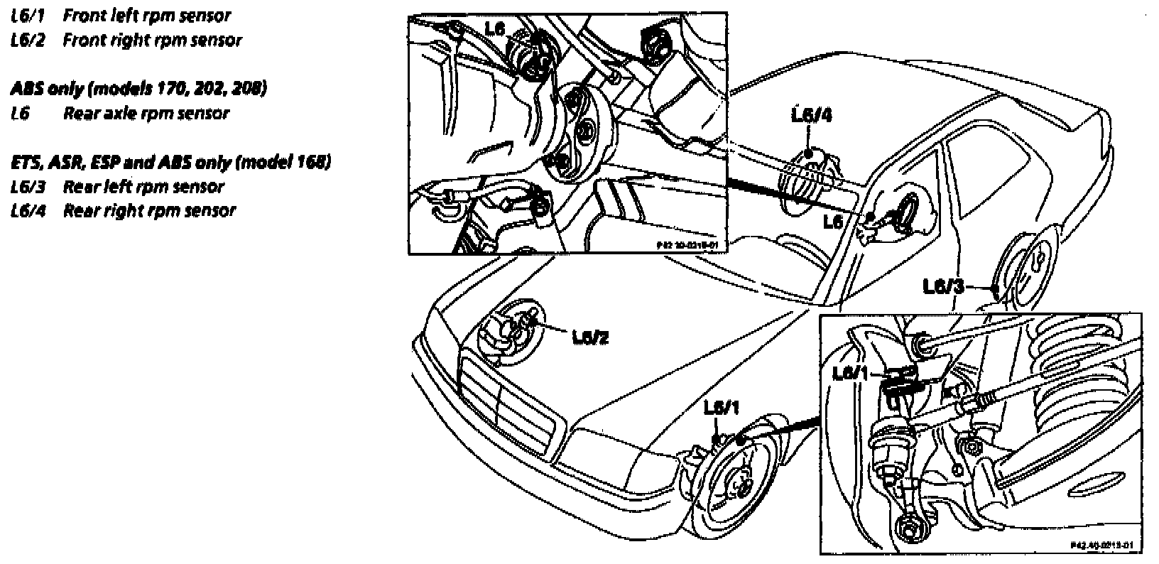 The front axle VSS sensors (L6/1 and L6/2) are mounted on the front axle steering knuckle.