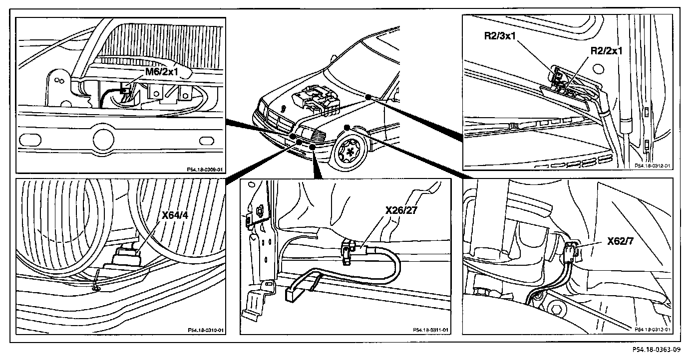 Wiring and Plug Connectors, Engine Compartment (Left):