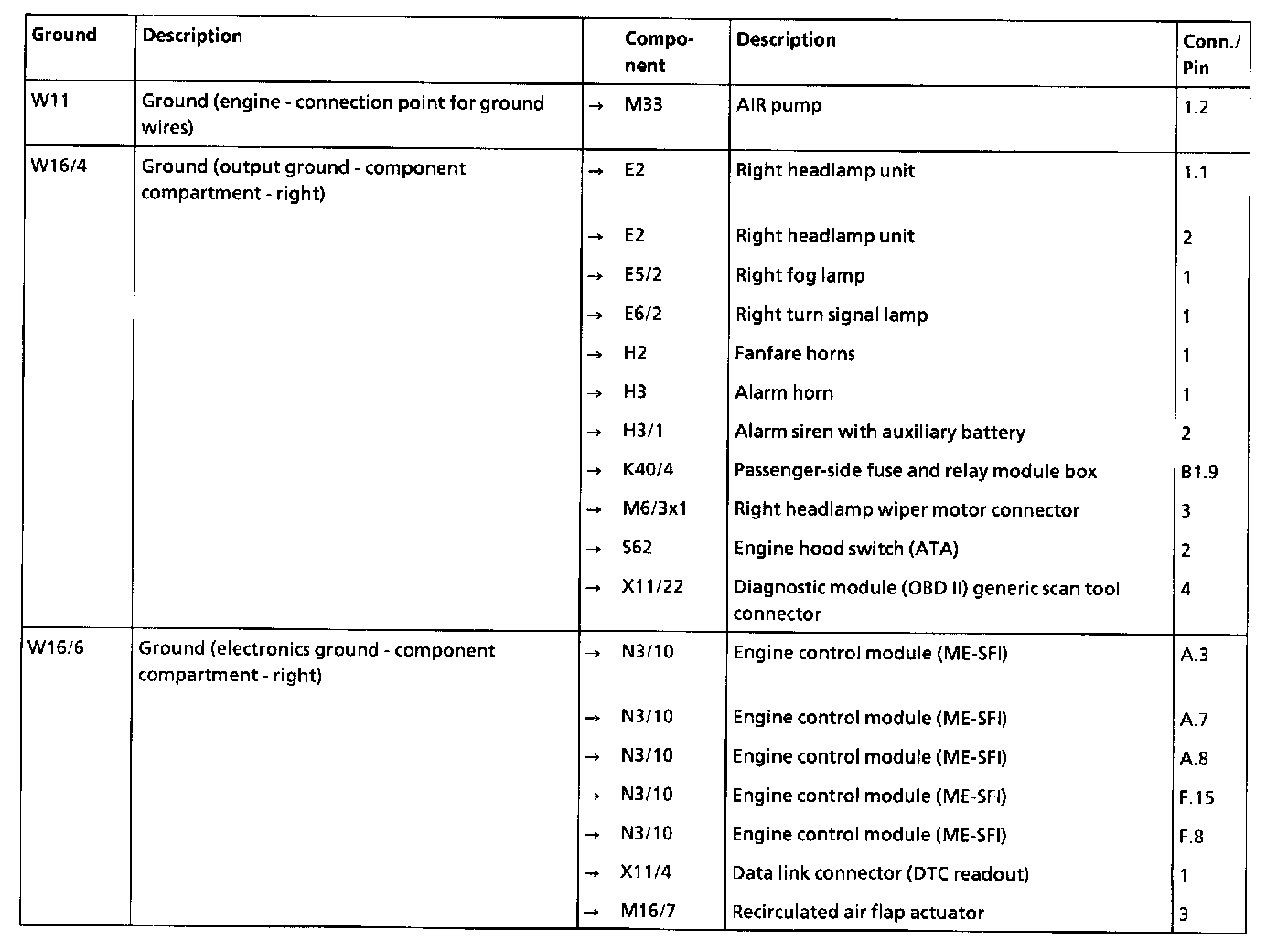 Engine Compartment (Right), Arrangement and Assignment of Ground Points: