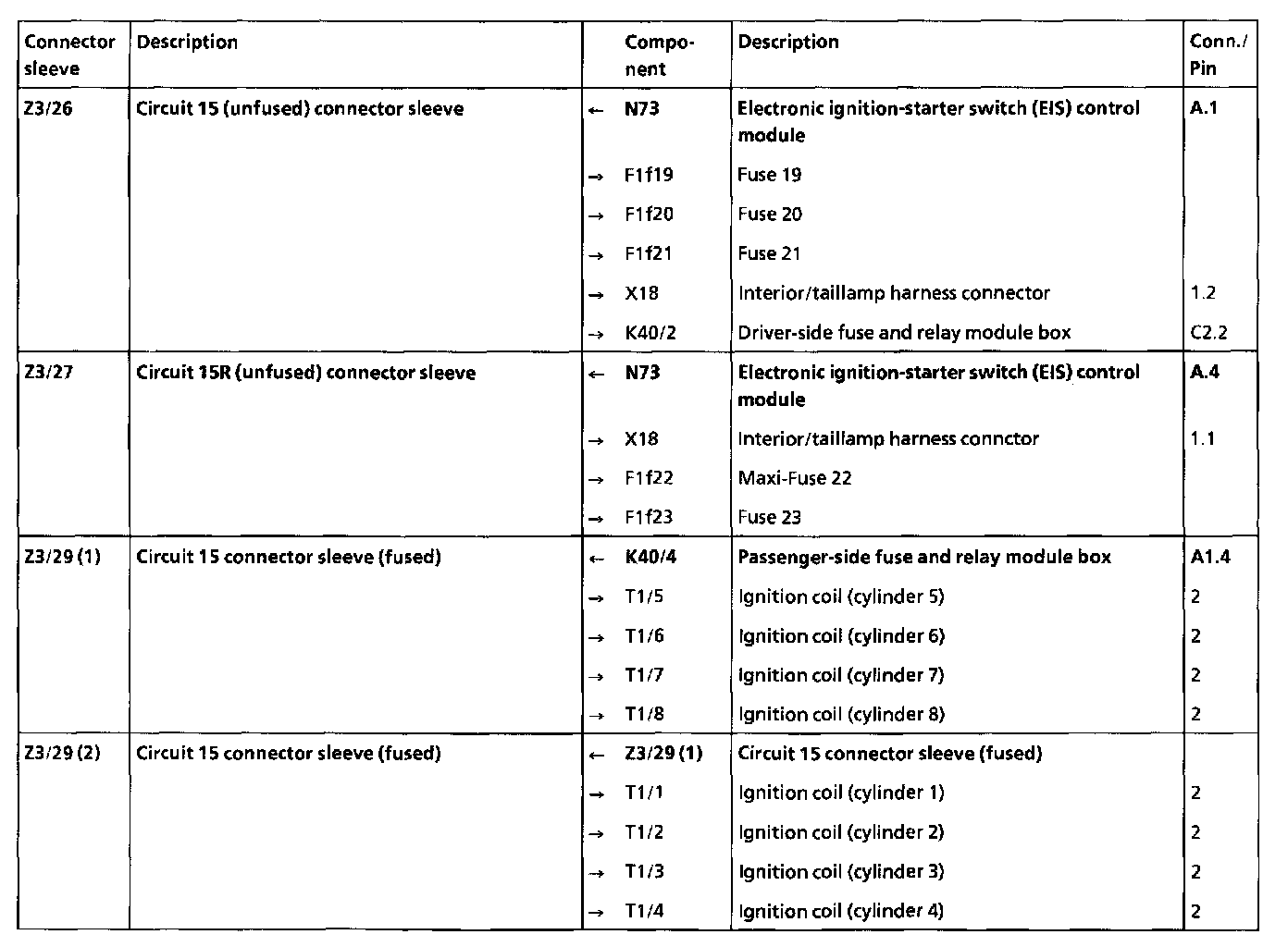Engine Compartment (Left), Arrangement and Assignment of Z Connector Sleeve, Connector Location,: