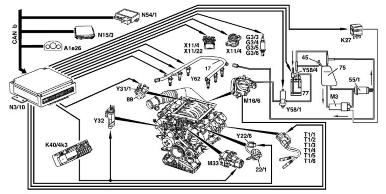 T1/1-T1/6 Cylinder 1 to 6 ignition coils (double ignition coils)