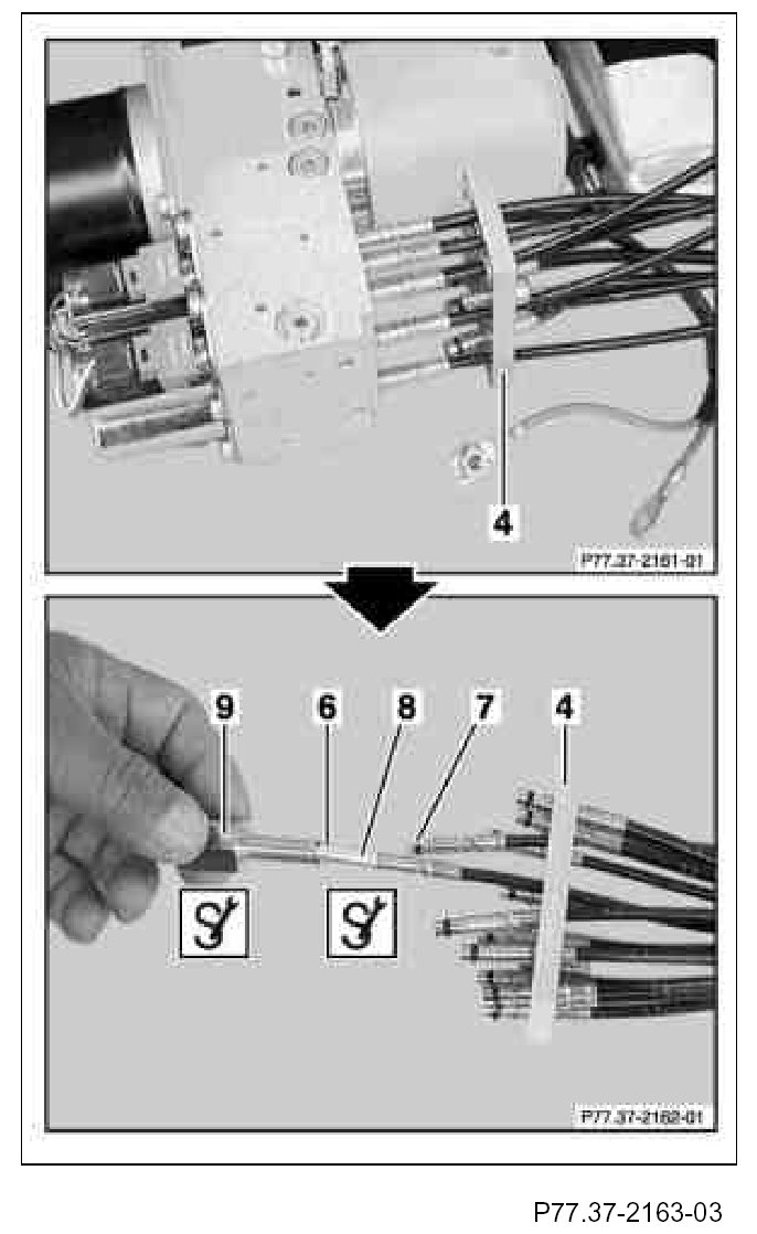 If it is necessary to replace individual hydraulic lines (5), only pull out hydraulic lines (5) to be replaced.