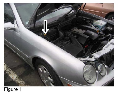 3. Plug the Star Diagnosis into the OBD Diagnosis Port. The OBD diagnostics port is a 38-pin port in the wiring harness compartment in the right, rear corner under the hood (Figure 1 and 2).