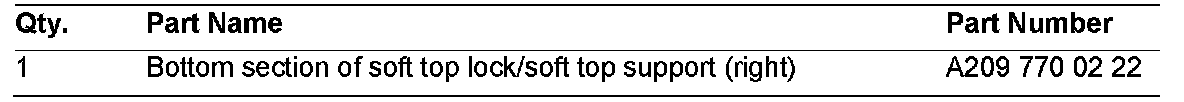 If you receive customer reports in the above model vehicles that the soft top does not close, replace the right side bottom section of the soft top lock as per WIS document AR77.33-P-1007QA. This is caused by the right side limit switch S84/18 being in the "Soft top in catch position". The following fault codes may be present or stored: