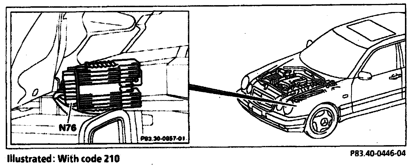 The electric suction-type fan control module (engine/A/C) (N76) is located in the front left wheelhouse.