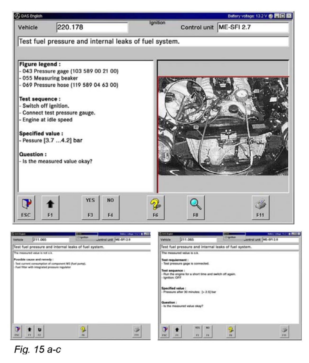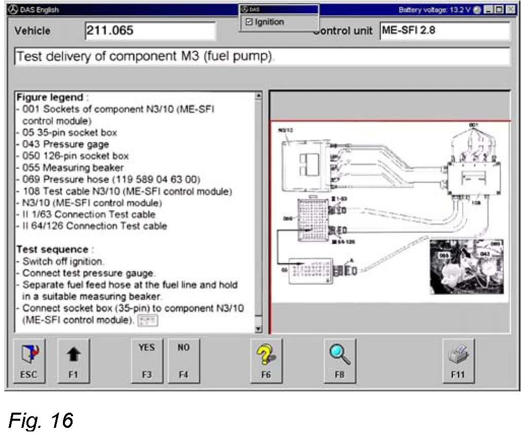Step F2: Test delivery of component M3 (fuel pump).