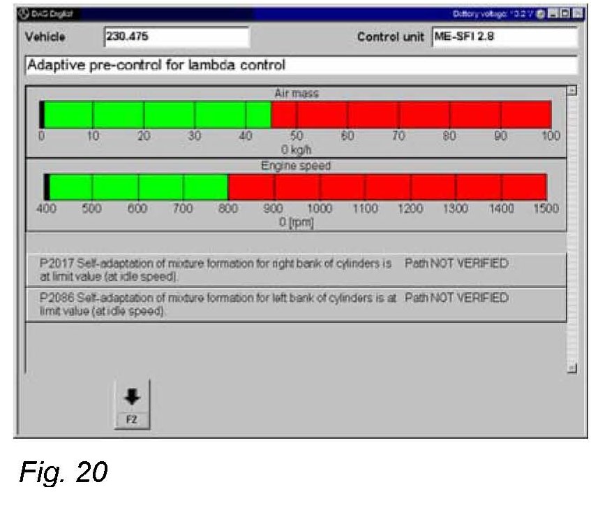 The path to the screens to perform the adaptive pre-control for lambda control (Fig. 19 and Fig. 20) in DAS are as follow: