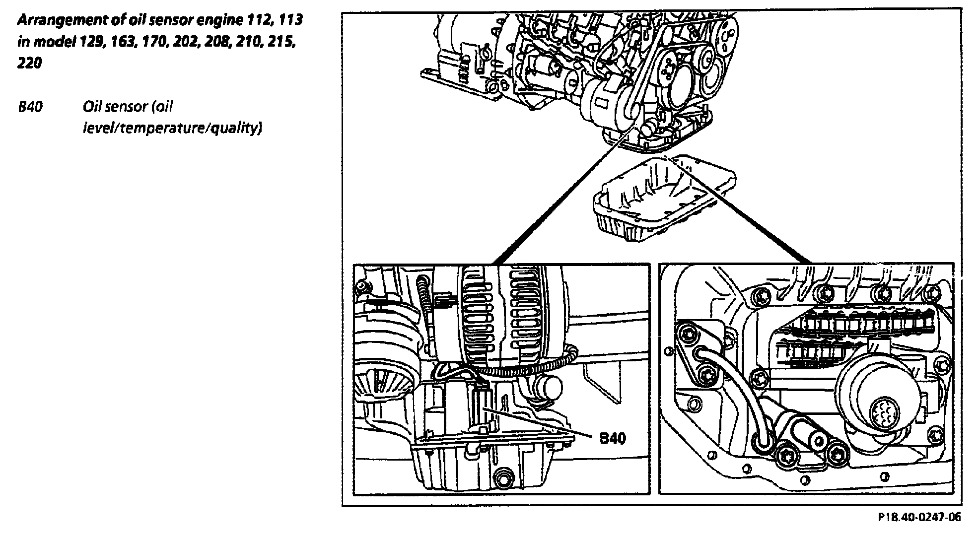 Arrangement Of Oil Sensor Engine 112, 113 In Model 129, 163, 170, 202, 208, 210, 215, 220