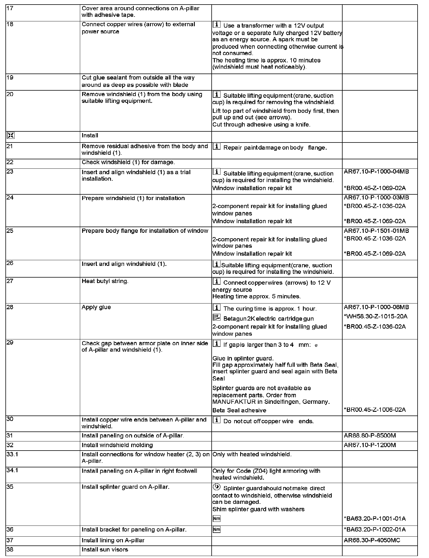AR67.10-P-1000MB Remove/Install Windshield