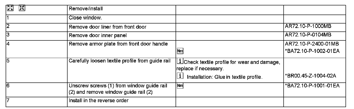 AR72.10-P-1500MB Remove/Install Window Guide Rail for Front Doors