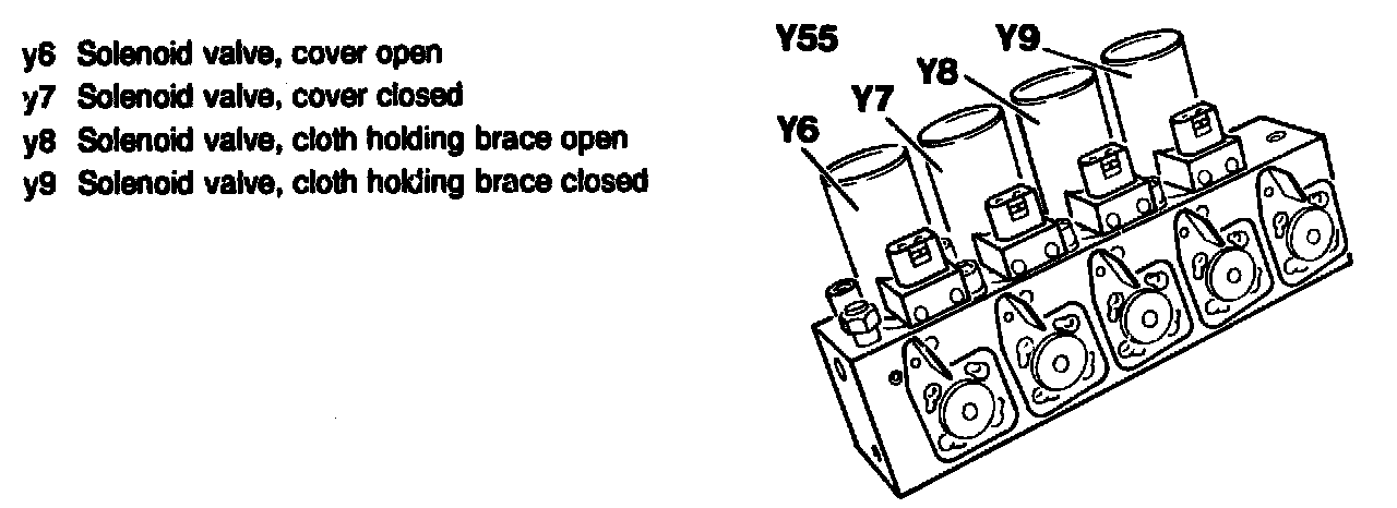 Normal cylinder circuit (B) for the functions: top and cloth holding brace.