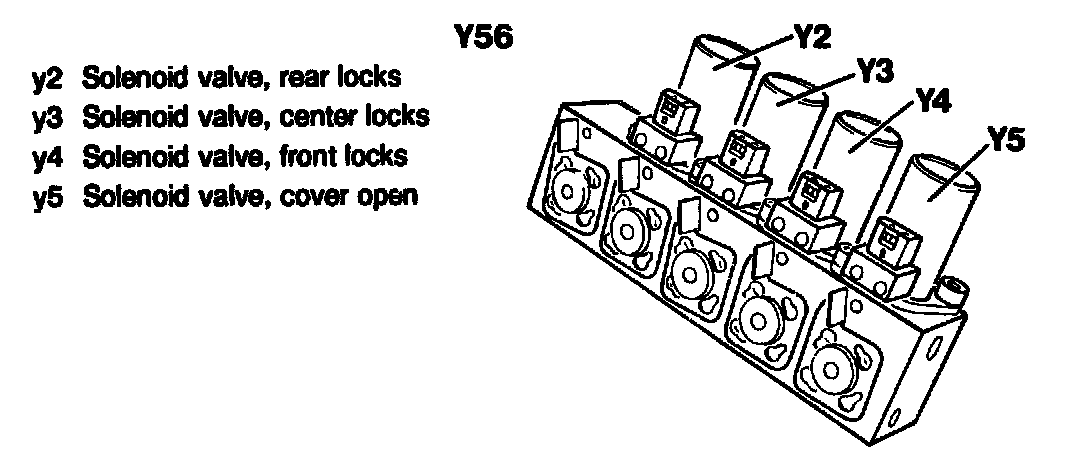 Differential circuit (C) for the functions: top compartment cover, roll bar and locks. With the cloth top, switch-over from normal to differential operation is accomplished during the closing operation.