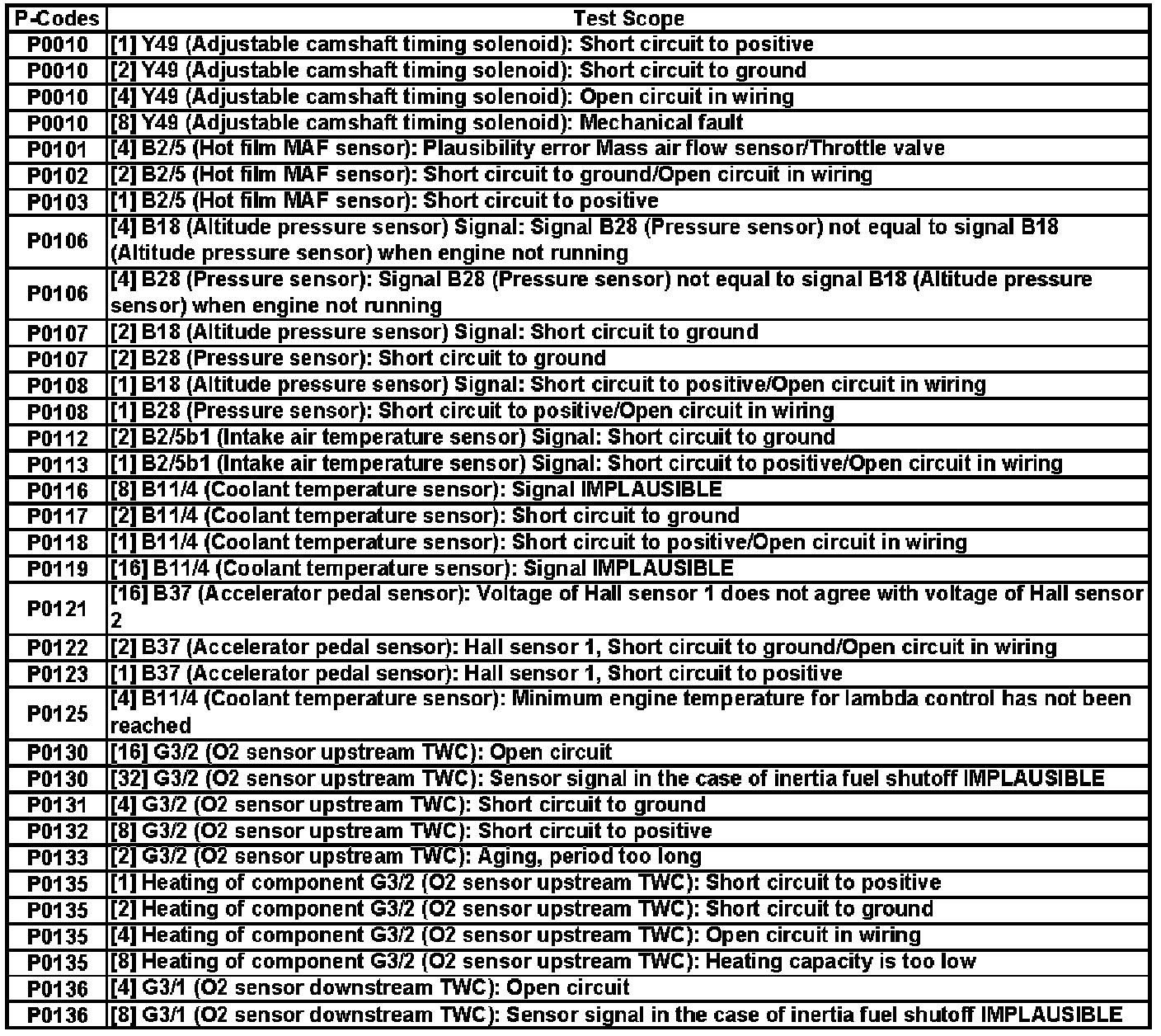 A L L Diagnostic Trouble Codes ( DTC )