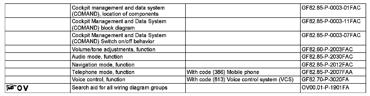The following control units are actuated by the COMAND operating, display and controller unit over the MOST: