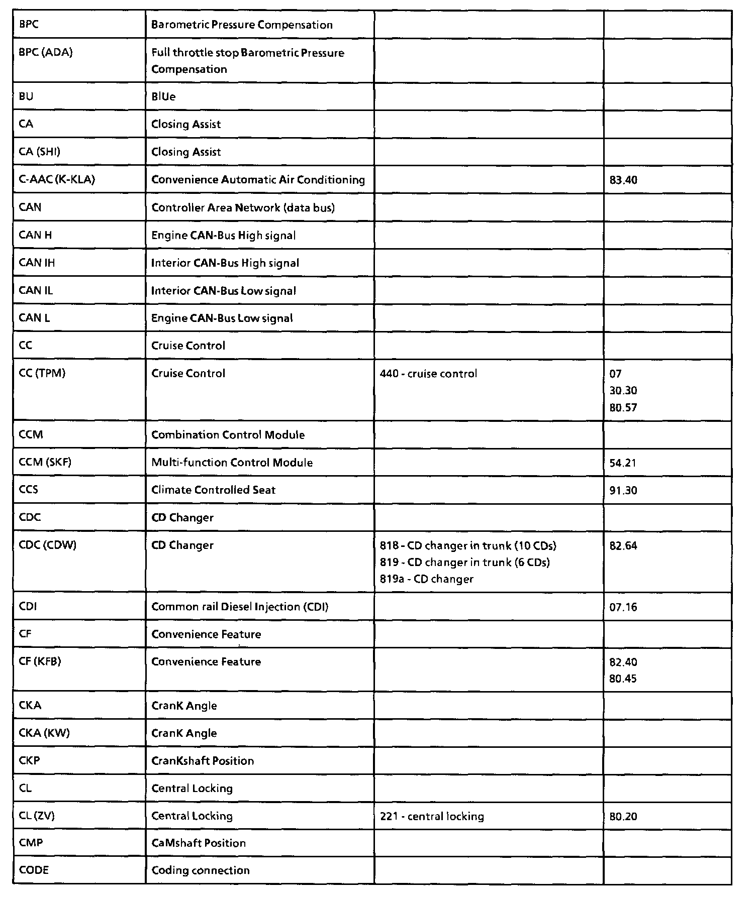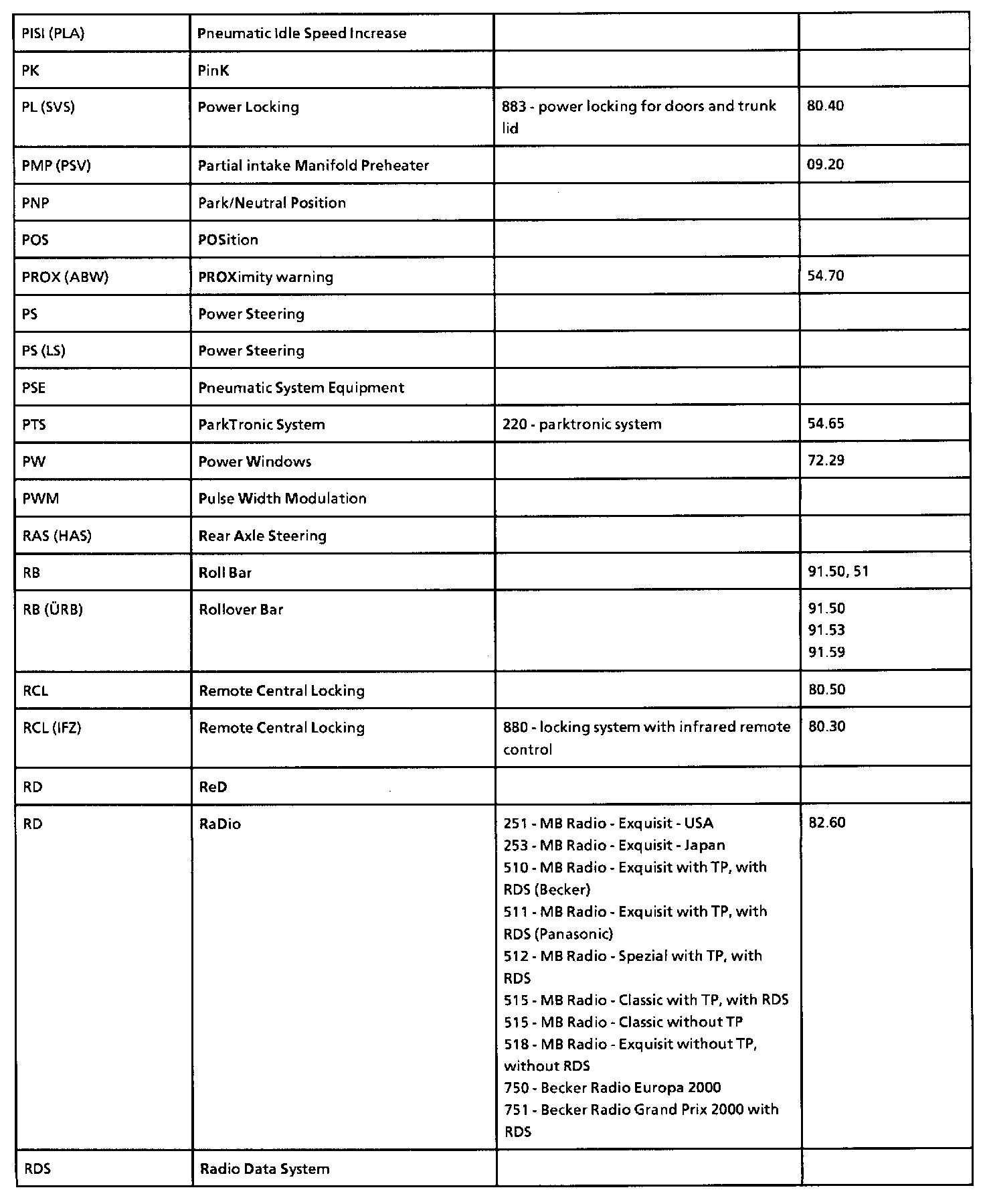 Abbreviations and Option Codes OV00.01-U-1001-27A4MATIC - AIR:
