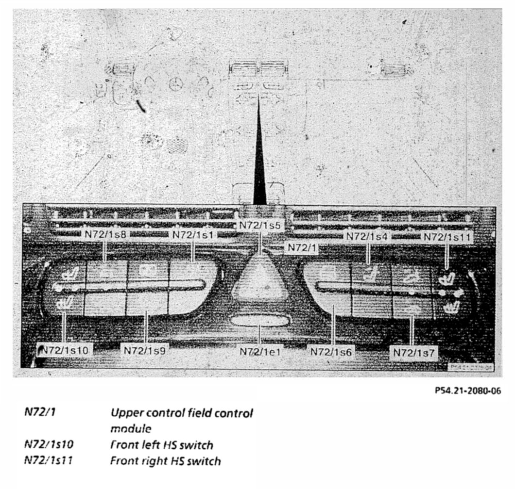 The switches for the heated seats are integrated into the upper control field control module (N72/1).