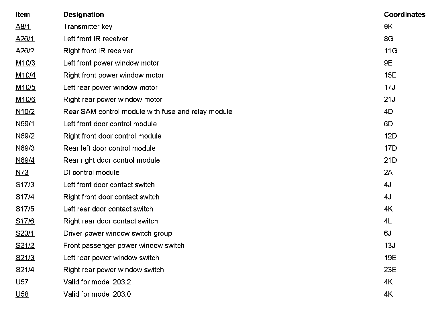 Component Description/Coordinates, A8/1 To U58: