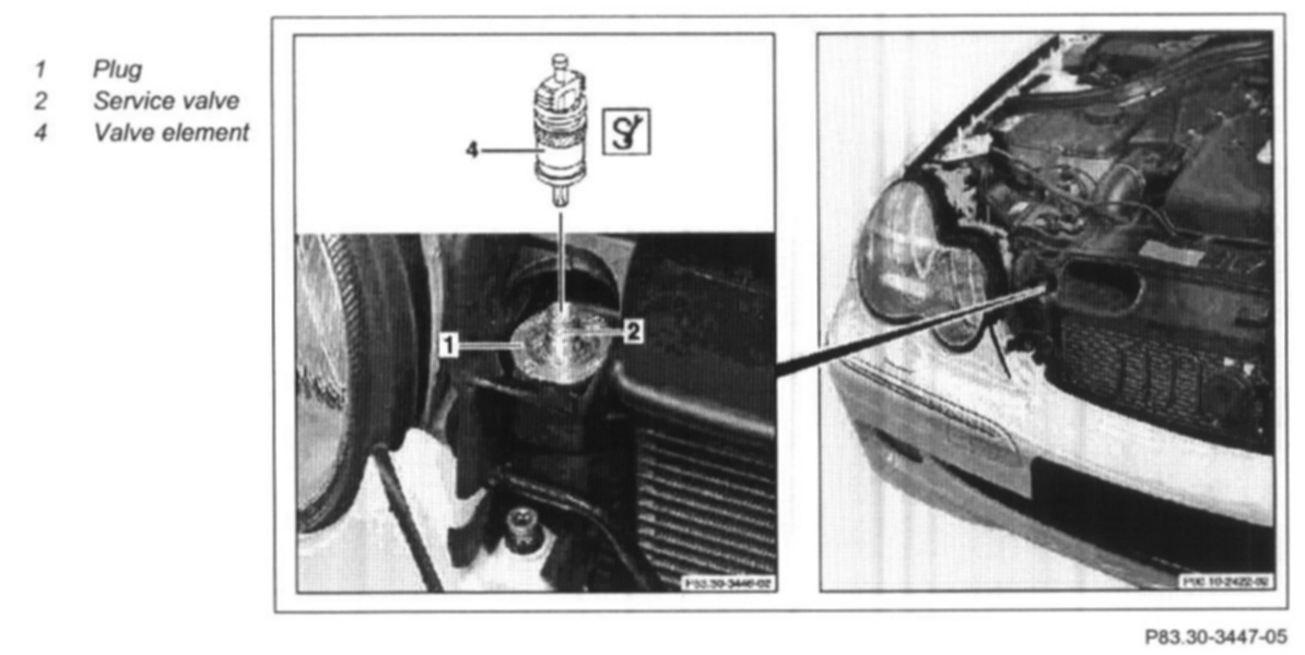 4 Unscrew valve element (4) on service valve (2)