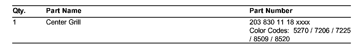 In the event that a triangle shaped film is found to be fogging the center inside of the windshield (refer to figure 1) on Model 203 vehicles, replace the top center grill, part number 203 830 07 18, with part number 203 830 1118 xxxx (specify color code).