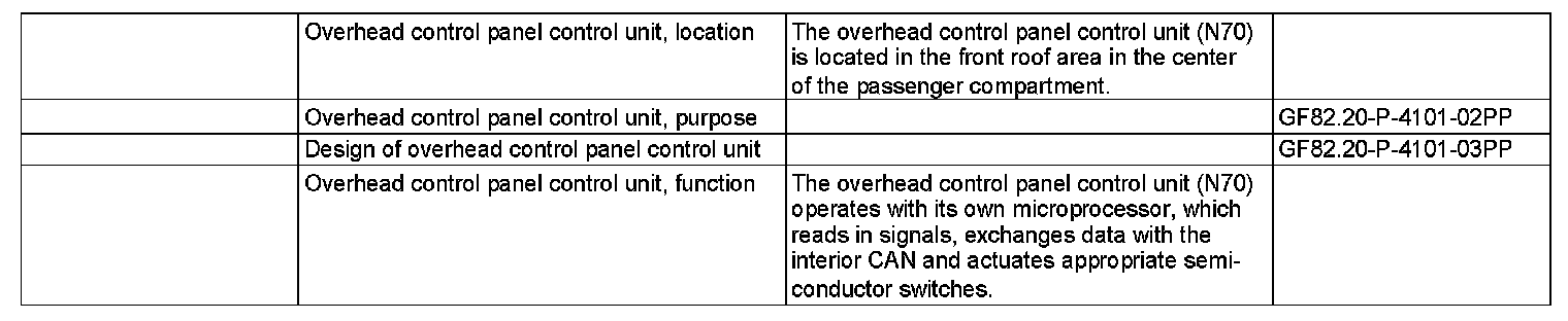 GF82.20-P-4101PP Overhead Control Panel Control Unit, Location/Task/Design/Function